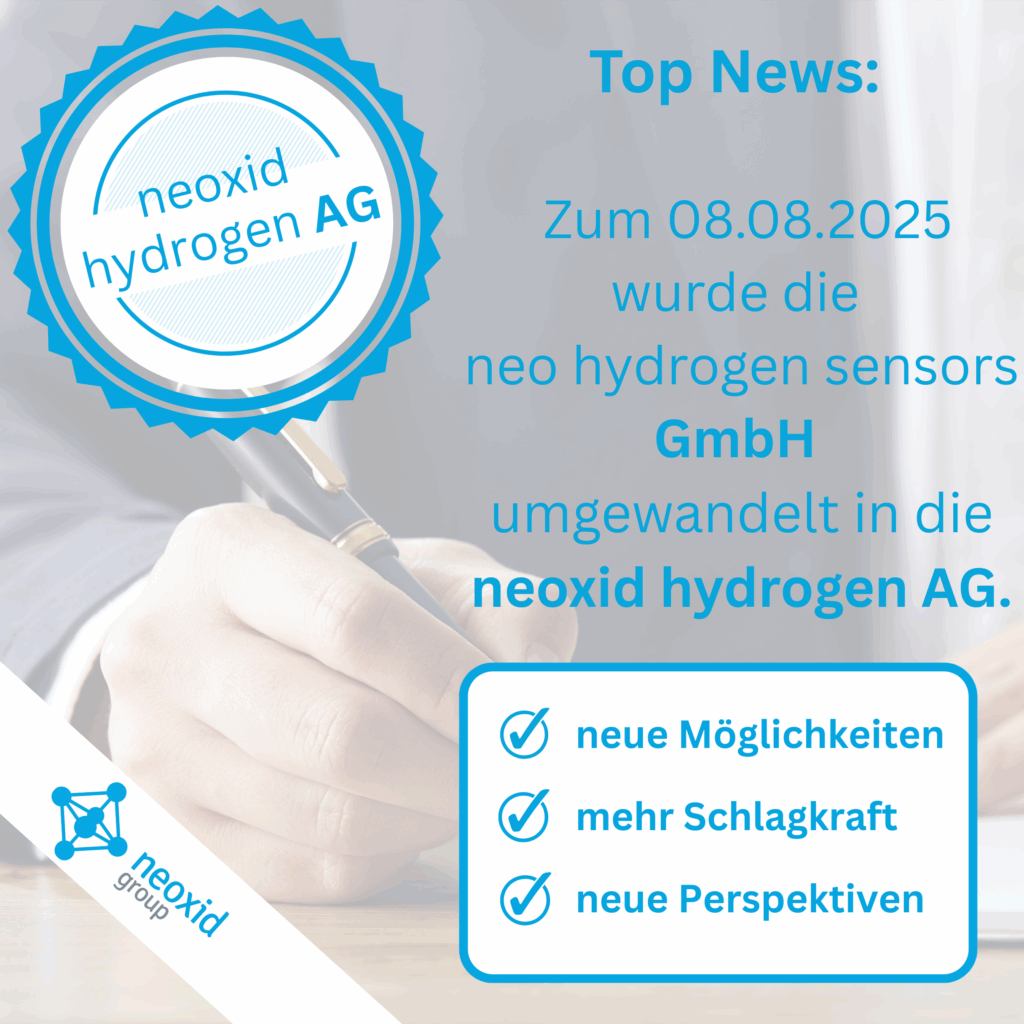 We continue to grow – neo hydrogen sensors GmbH is now neoxid hydrogen AG!With immediate effect, we are no longer operating as a GmbH (limited liability company), but as an AG (public limited company, non-listed). This is an important step in our development, demonstrating that we are part of the growing neoxid group and a…