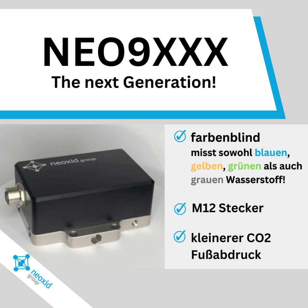 We are pleased to introduce the new generation of our NEO9xxx sensors: robust, sustainable and colour-blind ???? These sensors measure blue, green, yellow and grey hydrogen with high reliability. In addition, they impress with their exceptional robustness, high reliability and reduced carbon footprint. The sensors are now available with an M12 plug connection. Please feel…