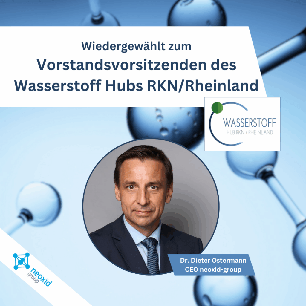 Dr Dieter Ostermann (CEO of the neoxid group) has been re-elected as Chairman (President) of the Hydrogen Hub RKN/Rhineland. The Hydrogen Hub RKN/Rhineland e.V., which now has more than 130 members, connects companies, politics and science around the development of the hydrogen economy in the Rhineland. With the aim of becoming Germany's central hydrogen competence…